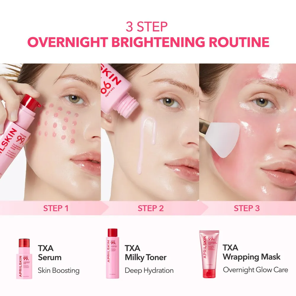 APRILSKIN TXA Niacinamide 99 Overnight Wrapping Mask (80 ml) brightens, hydrates, and rejuvenates skin while you sleep. Infused with Tranexamic Acid (TXA) and Niacinamide, this advanced night mask targets dark spots, dullness, and uneven tone for visibly radiant skin by morning.