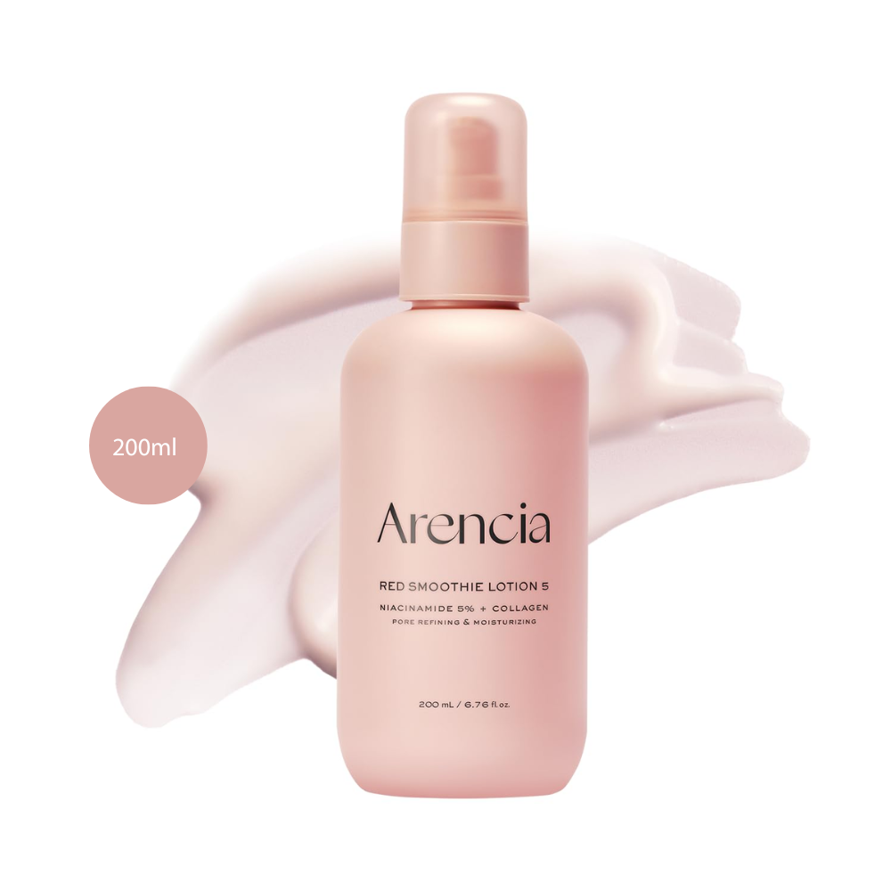 Infused with a red fruit complex, the Arencia Red Smoothie Lotion 5 provides antioxidant support while enhancing overall skin clarity. The nutrient-rich blend helps improve dullness and uneven tone, promoting a more vibrant and refreshed complexion. With consistent use, skin appears smoother, brighter, and well-hydrated.