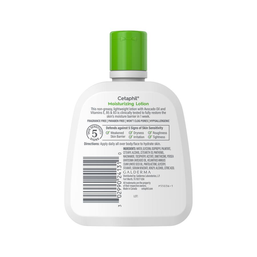 Cetaphil Moisturizing Lotion (118ml) is a lightweight, fast-absorbing daily lotion formulated to deliver immediate and long-lasting moisture for all skin types, with special benefits for sensitive skin. Clinically shown to provide 24-hour hydration and to improve the skin’s moisture barrier in as little as one week, it leaves skin feeling soft, smooth and comfortable without a greasy residue.