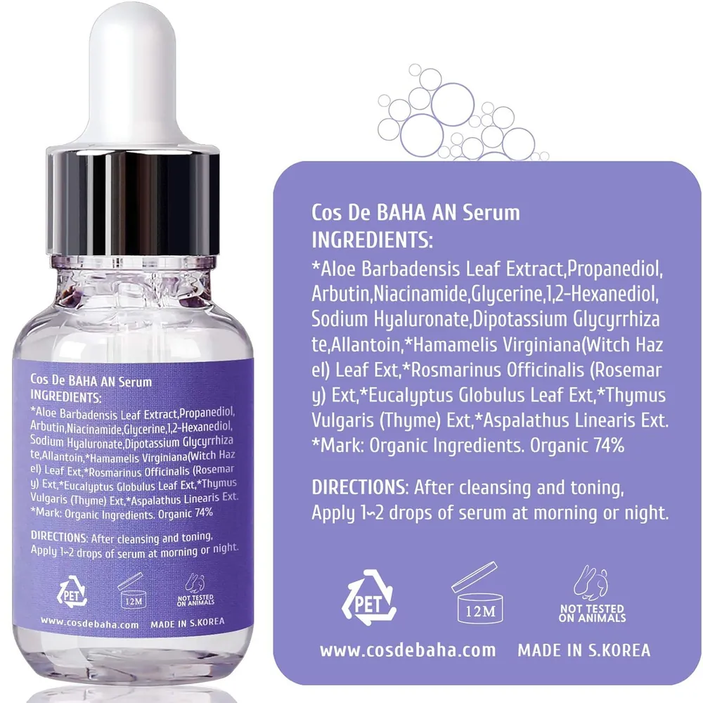 Cos De BAHA Arbutin 5% + Niacinamide 5% Serum brightens dull skin, fades dark spots, and evens tone. With MSM and Hyaluronic Acid, it deeply hydrates and promotes a healthy, radiant glow.