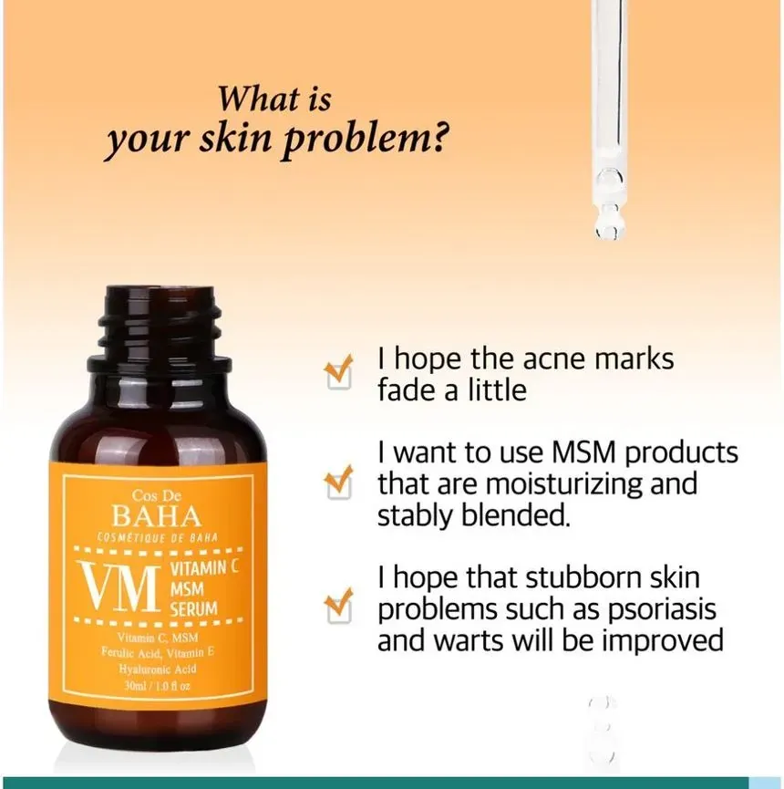 Cos De BAHA Vitamin C Facial Serum with MSM brightens dull skin, fades dark spots, and smooths texture. With Vitamin C and Niacinamide, it hydrates deeply and restores radiant, healthy-looking skin.