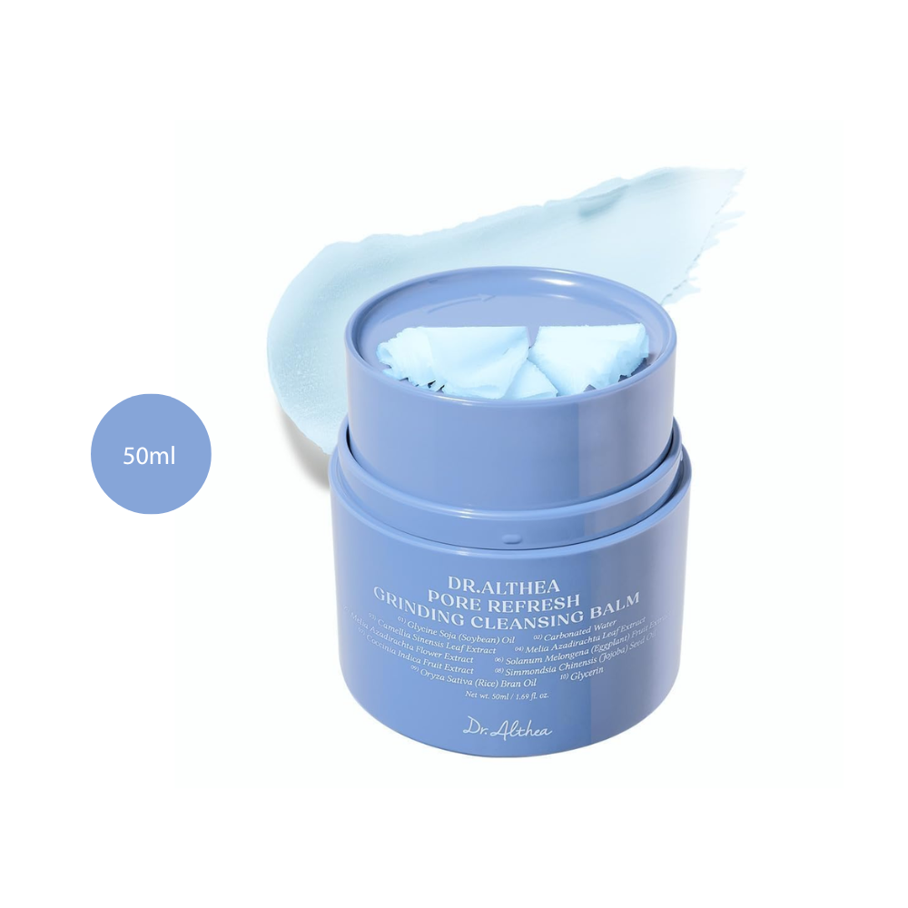 The Dr.Althea Pore Refresh Grinding Cleansing Balm is a hygienic and innovative cleansing balm designed to effectively remove makeup, sunscreen, and pore-clogging impurities. Because daily buildup of oil and debris can lead to blackheads and dullness, this refreshing balm works to deeply cleanse while maintaining moisture balance. At the same time, it supports smoother texture and clearer pores.