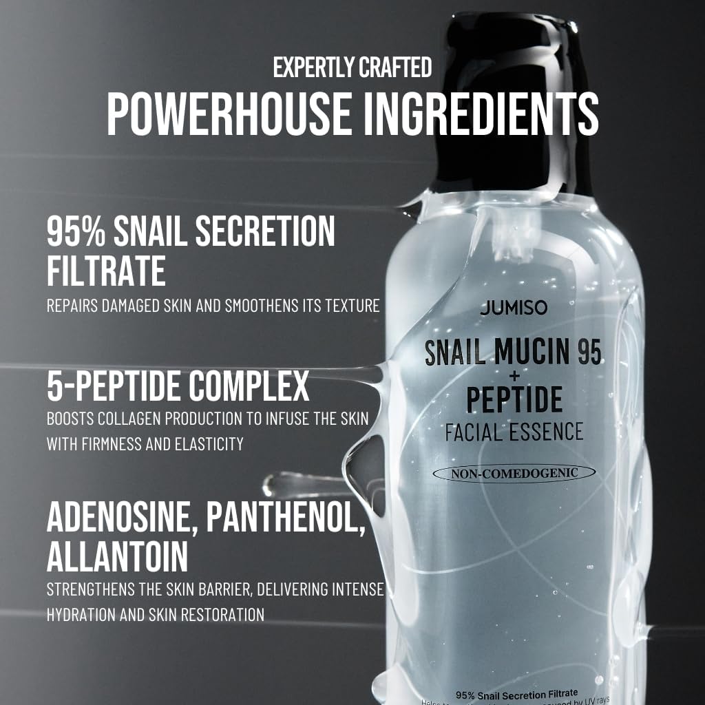 Snail Mucin (95%), Peptides, Skin-Repairing and Hydrating Agents.