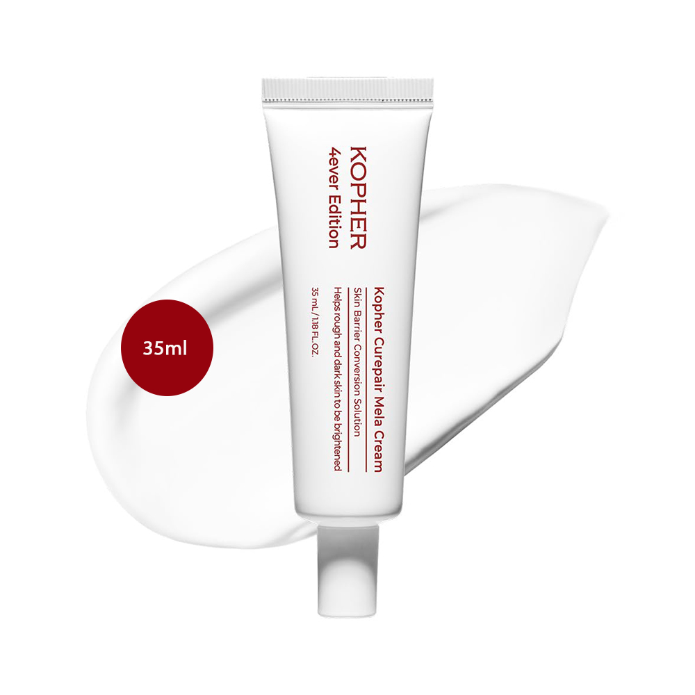 Formulated with KOPHER’s Curepair complex and skin-brightening agents, this cream actively helps improve the appearance of melasma, dark spots, and uneven tone. As a result, the KOPHER Curepair Mela Cream supports a clearer, more radiant complexion with consistent use. Additionally, its repair-focused formulation helps strengthen weakened skin and supports recovery from environmental stress and previous skin damage.