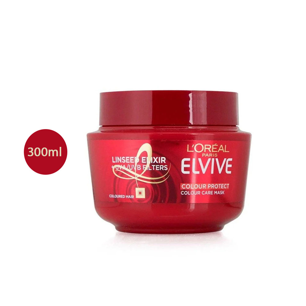L’Oreal Elvive Colour Protect Hair Mask 300ml nourishes and protects coloured hair with Linseed Oil and UV Filters. It boosts shine, softens texture, and helps maintain vibrant, long-lasting colour.