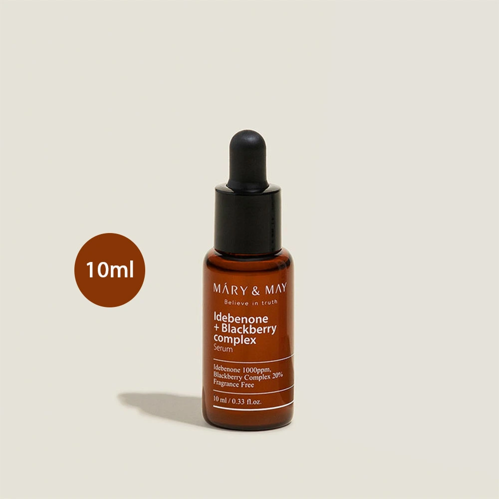 Mary & May Idebenone + Blackberry Complex Serum 10ml revitalizes and brightens the skin with powerful antioxidants. This vegan K-Beauty mini serum boosts elasticity, smooths fine lines, and restores natural glow for healthy, radiant skin.