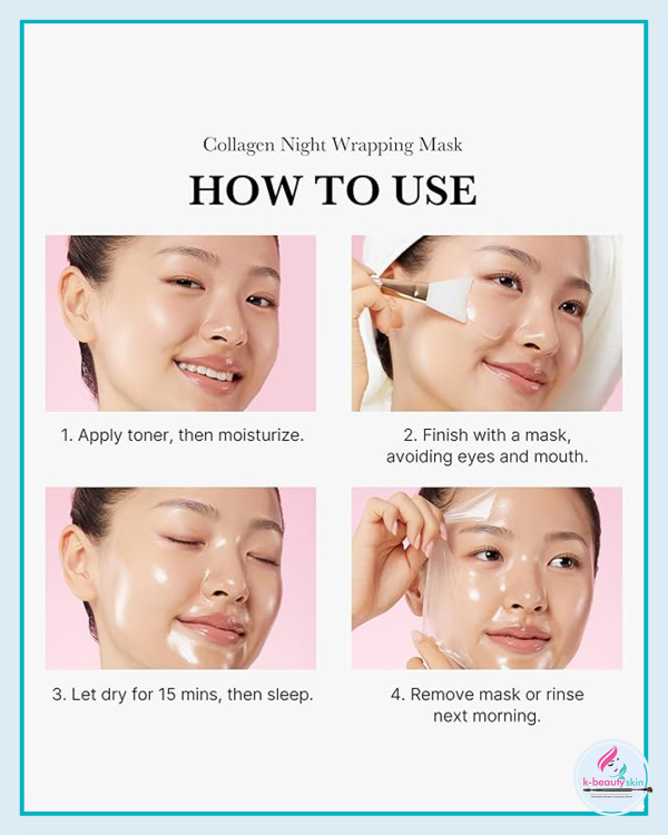 Formulated with collagen and skin-repairing ingredients, the mask helps improve skin elasticity and reduce the appearance of fine lines caused by dehydration and loss of firmness. At the same time, the unique wrapping texture forms a breathable moisture-sealing layer that prevents overnight moisture loss. As a result, skin feels intensely hydrated, firmer, and more resilient after waking up. Additionally, the formula supports long-lasting nourishment without clogging pores.