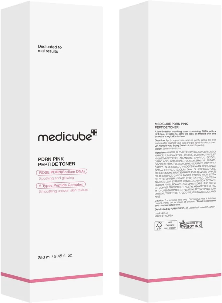 Medicube PDRN Pink Cica Soothing Toner (250 ml) is a refreshing and calming toner that hydrates, repairs, and soothes irritated skin while restoring balance after cleansing. Powered by PDRN (Salmon DNA) and Centella Asiatica Extract, this toner helps strengthen the skin barrier, reduce redness, and promote a healthy, radiant complexion.
