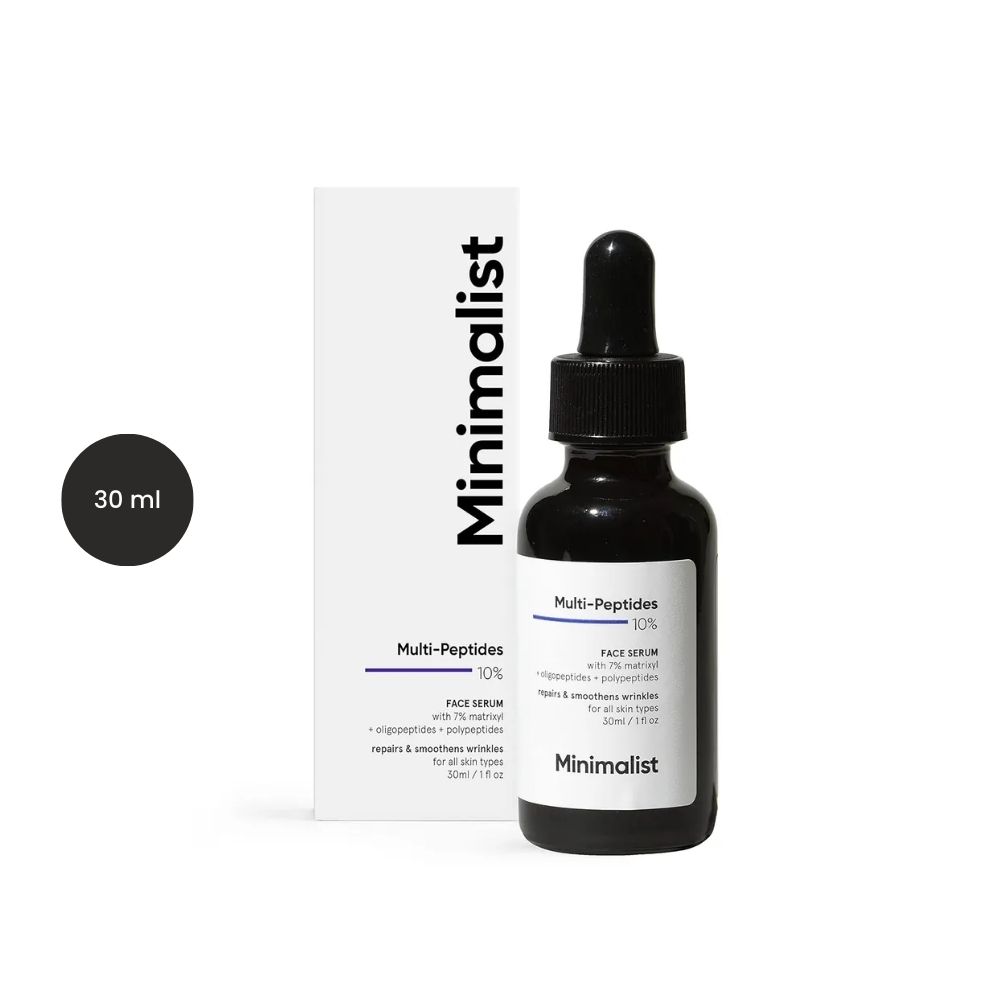 Minimalist Multi-Peptides 10% Serum (30 ml) smooths fine lines, boosts firmness, and improves elasticity with Matrixyl 3000 and Argireline. Hydrating, fragrance-free formula for a plumper, youthful glow.