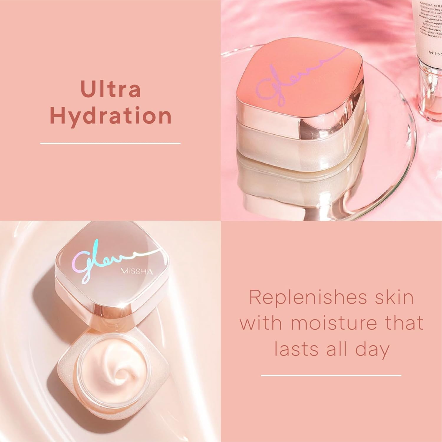 MISSHA Glow Skin Balm is a 4-in-1 skin enhancer that functions as a moisturizer, primer, morning pack and luminizing cream. With a high concentration (53%) of Damask Rose Water Extract, it delivers long-lasting hydration and a dewy, glass-skin glow while being gentle enough for sensitive skin.