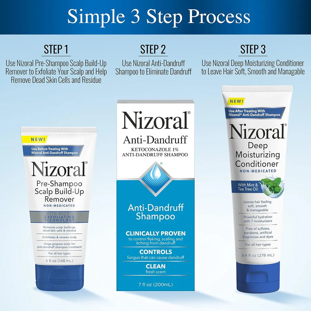 • Nizoral Anti-Dandruff Shampoo 1% – An over-the-counter formula that controls flaking, scaling, and itching with 1% ketoconazole. Ideal for regular use 2–3 times per week.