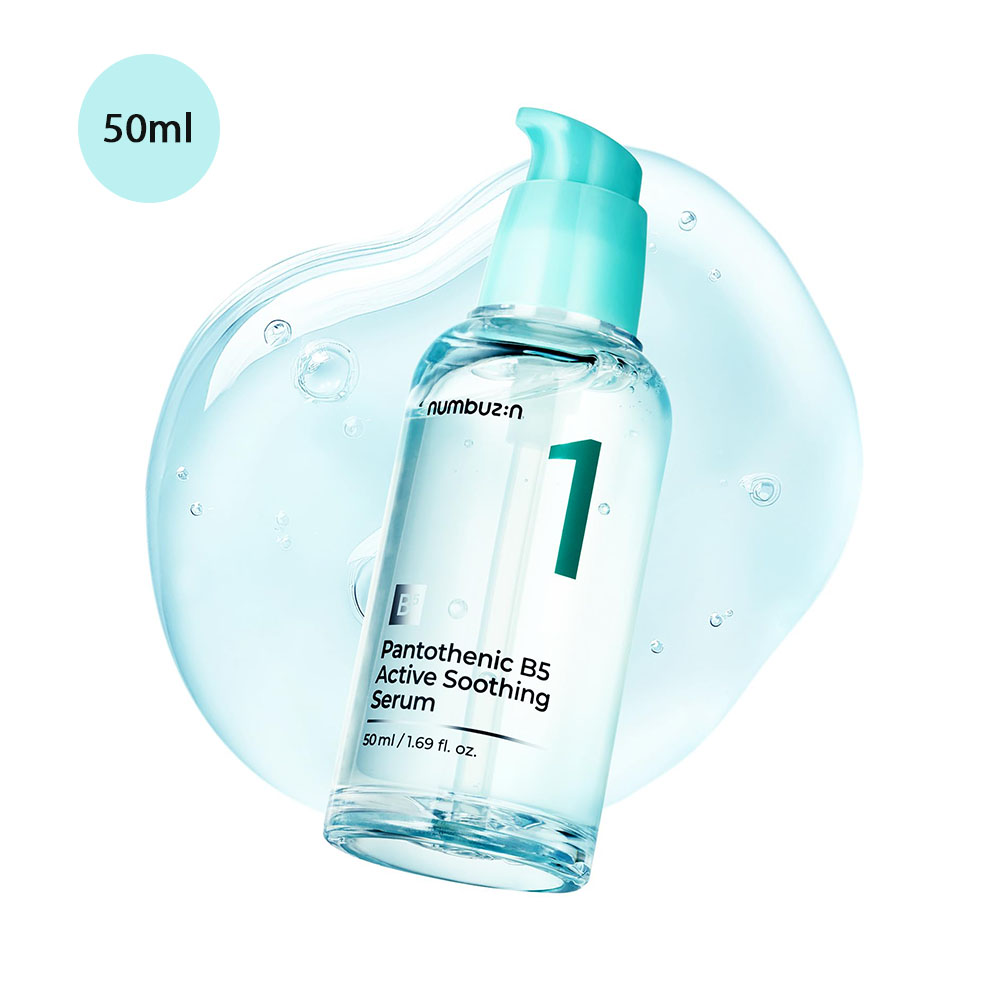 numbuzin No. 1 Pantothenic B5 Active Soothing Serum 50 ml calms, hydrates, and repairs skin with Panthenol, Centella, and Hyaluronic Acid. It strengthens the barrier and restores a healthy, dewy finish.