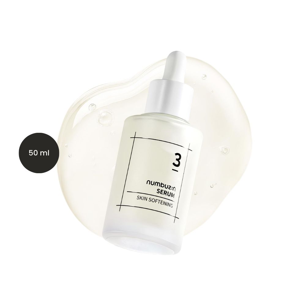 Numbuzin No.3 Skin Softening Serum (50 ml) is an essence-like serum formulated to refine texture, hydrate deeply and deliver the translucent “glass skin” effect. With over 42% fermented ingredients plus niacinamide, adenosine and hyaluronic support, it targets enlarged pores, dullness and uneven tone while feeling lightweight on the skin.