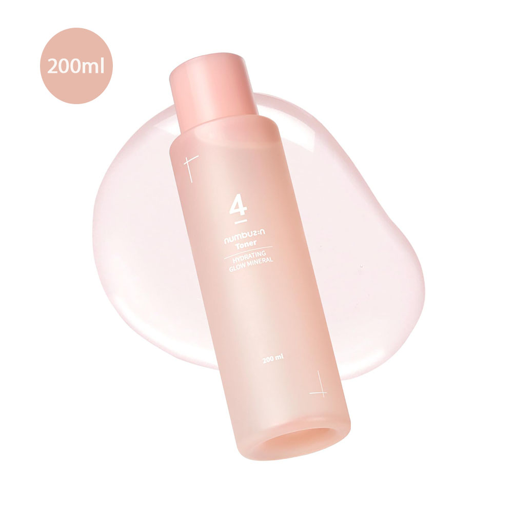numbuzin No.4 Hydration Glow Mineral Toner 200ml hydrates, smooths, and brightens skin with Mineral Water, Hyaluronic Acid, and Niacinamide. It leaves skin soft, radiant, and perfectly prepped for skincare.