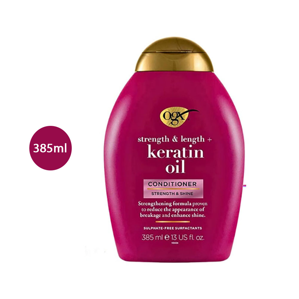 Apply generously to clean, damp hair. Focus on the mid-lengths and ends. Leave on for 2–3 minutes, then rinse thoroughly. For best results, pair with OGX Keratin Oil Shampoo.