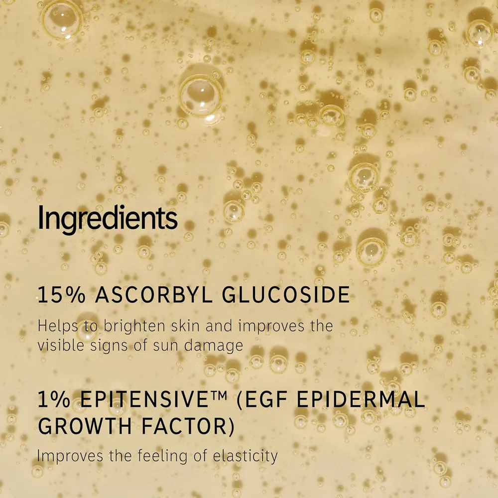 15% Vitamin C (Ascorbyl Glucoside), EGF Peptides, Glycerin.