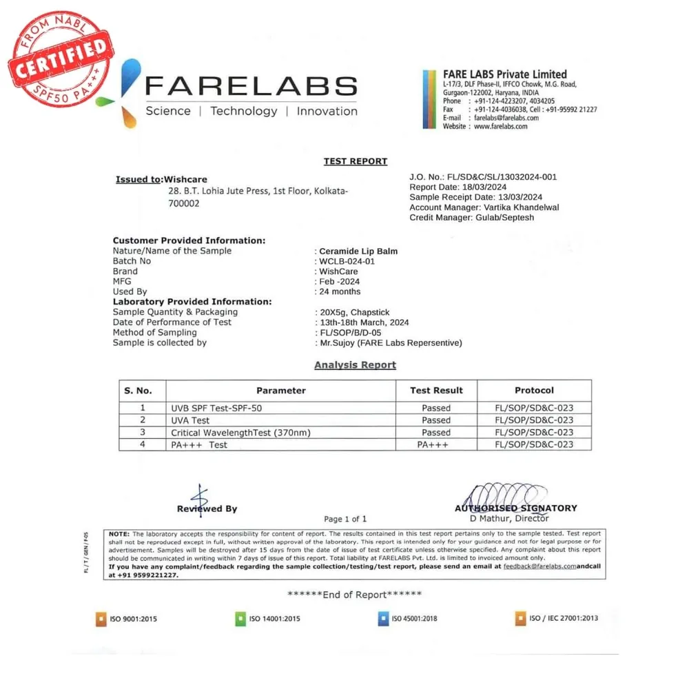 The WishCare Ceramide Tinted Lip Balm SPF50+ PA+++ (5g) offers daily lip protection with a sheer tint and deep moisturization. Formulated with Ceramides, Vitamin E, and Natural Oils, it keeps your lips soft, smooth, and nourished while enhancing them with a natural flush of color.