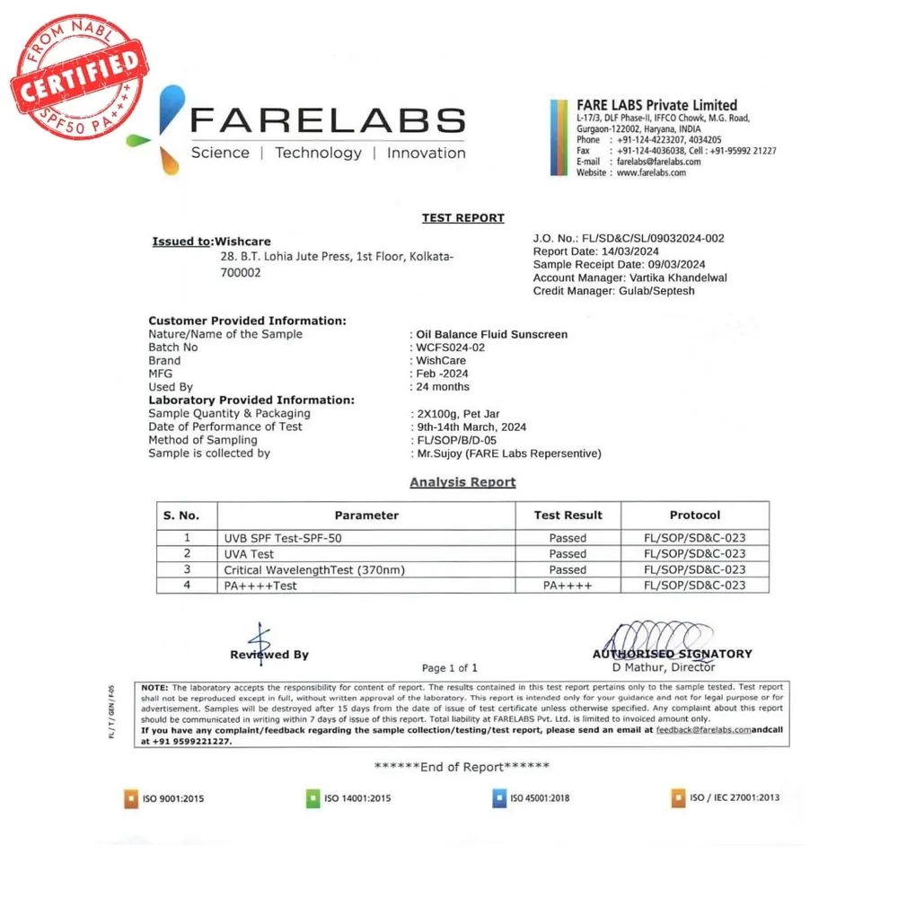WishCare Niacinamide Oil Balance Sunscreen SPF50+ PA++++ 50g protects against UV rays while controlling excess oil. With 5% Niacinamide and hydrating actives, it brightens, balances, and leaves a lightweight matte finish with zero white cast.